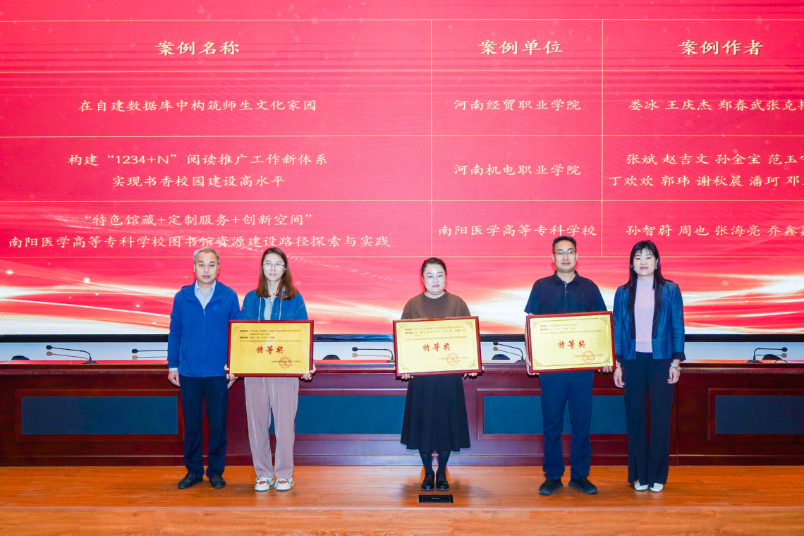 会议期间,还举办了2025年河南省高职高专院校图书馆服务创新大赛颁奖仪式,表彰了服务创新突出单位。在案例分享环节,河南经贸职业学院、河南机电职业学院、南阳医学高等专科学校分别展示了创新实践优秀案例,为全省高职高专院校图书馆提升创新服务质量提供了宝贵经验和示范。